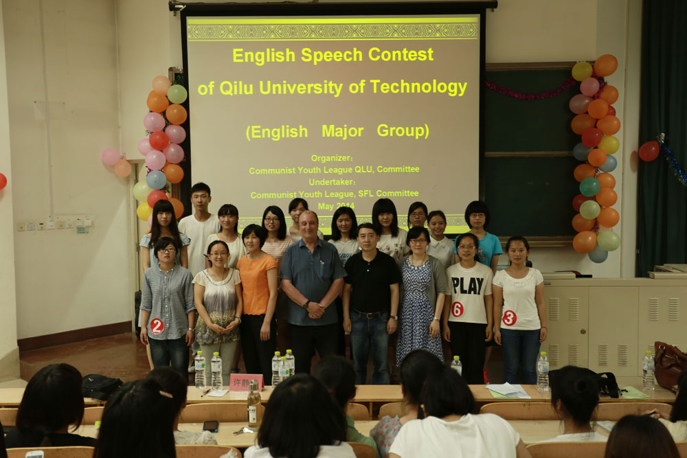 为丰富校园文化生活,活跃英语学习氛围,提高学生英语交流能力,由校团委主办,外国语学院承办的第二十三届科技文化艺术节之英语演讲比赛总决赛于5月22日晚在图书馆报告厅和2号公教楼阶梯304室圆满落幕。大赛评委由外国语学院院长陈国兴教授、副院长杨辉教授、专业老师及外籍教师担任。校团委书记张文斗,外国语学院党政领导及各学院团委老师作为嘉宾出席了比赛。