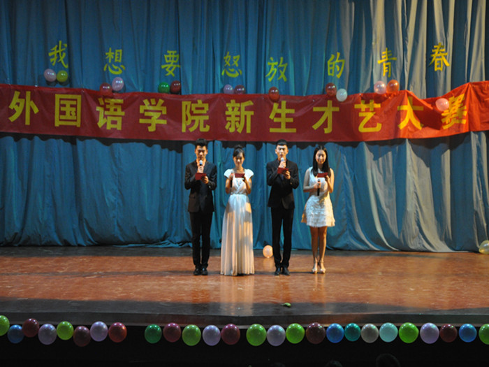 在阳光明媚的十月,为了弘扬多彩的校园文化,展现2014级学生朝气蓬勃的青春风采与积极向上的精神风貌。齐鲁工业大学外国语学院于10月12日在南校区大礼堂隆重举办了“我想要怒放的青春”2014级新生才艺大赛,外国语学院党委副书记苑学芹、校团委李训一老师、化学与制药工程学院辅导员任寰老师、外国语学院团委老师担任此次大赛的评委,2014级全体同学积极参加。