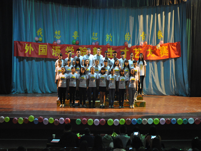 在主持人声情并茂的开场致辞中,新生才艺大赛拉开了帷幕。一首首动听的歌曲带领我们体会了青春的五味杂陈,带给我们一场听觉盛宴;有的选手突破自我反串出演小品、相声,现场更是爆笑不断;更有个性十足的魔方show使我们眼前一亮,新颖的创意熟练的手法使大家称赞不已;现场的舞蹈或柔美婀娜或动感十足,似梦似幻。丰富多彩的节目给观众们留下了深刻印象,参赛选手以多样的形式,十足的创意,饱满的热情,自信的出演,赢得了阵阵掌声。最终2014级朝鲜语班李金琳同学的魔方秀、英语三班吴施臻等同学的歌曲《没什么不同》以及英语三班杨爱超等同学的小品《甄嬛反串》获得一等奖,舞蹈《惊鸿舞》、歌曲《开到荼蘼》以及诗朗诵《青春颂》等分获二等奖、三等奖和优秀奖。大赛还评出了最佳台风奖、最佳语音奖、最佳人气奖以及最佳风采奖。