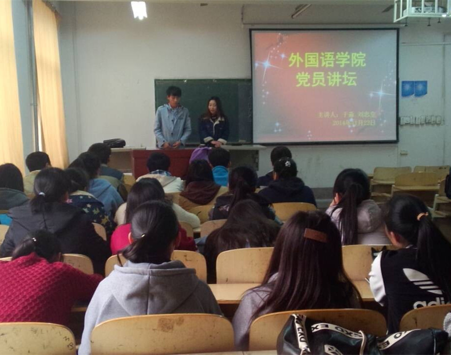 为了引导学生树立正确的世界观、人生观、价值观,以及社会主义核心价值观和正确的政治信仰,外国语学院于11月22日,在历下校区教学楼201室举办了第三十三期党员讲坛。此次党员讲坛活动由2名2012级学生党员担任主讲,2014级入党积极分子参加。