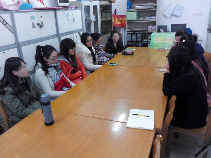 为了加强同学们对考研的认识与了解,确立自己的方向,2014年11月27日,外国语学院在文科楼202室举办了第四期考研导航沙龙。该学院孟华、刘晓茜两位英语专业老师以及2011级准备考研的同学参加本期沙龙。