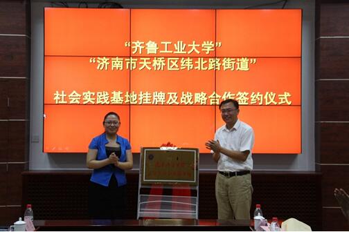 随后,纬北路街道党工委书记王新锋和齐鲁工大信息学院党委书记王玉立共同签署了战略合作协议;我校学生代表和社区代表先后发言;周有波和朱玉明共同为团中央青年就业创业见习基地揭牌;齐鲁工业大学团委书记张文斗和济南市团市委副书记徐冬梅共同为大学生社会实践基地揭牌。