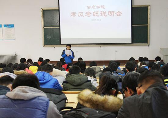 12月4日下午,信息学院在第三教学楼B419举办期末考试考风考纪说明会。信息学院团委老师及全体学生干部参加了本次动员大会。