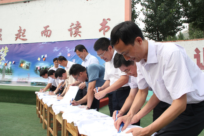 首先,兰陵县政府副县长周东峰对齐鲁工业大学暑期社会实践队的到来表示热烈欢迎并简要介绍了兰陵县的历史沿革和发展概况。随后齐鲁工业大学副校长周有波向对本次活动提供支持和帮助的兰陵县各界朋友表示感谢,期望借此次实践活动,能够在两地建立长效联系机制,共同为关爱少年儿童成长、社会主义新农村建设贡献力量。同时,也希望我校广大青年志愿者能够秉承“奉献、友爱、互助、进步”的青年志愿者精神,关注社会、服务社会、贡献社会,将参加实践活动的感受和经验带回学校,让更多的学生参与到关爱教育的活动中来。随后,周校长与兰陵县委副书记王军共同为暑期社会实践基地揭牌,金融学院“重温红色记忆见证老区新貌”暑期社会实践正式启动。