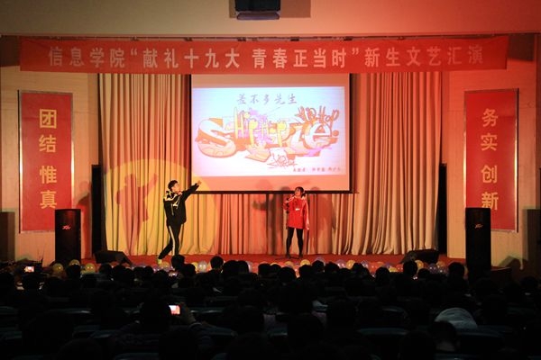 为展示信息学院新生风采,进一步丰富大学生课余生活,11月24日,信息学院于齐鲁大讲堂举办献礼十九大,青春正当时新生文艺汇演。信息学院党委副书记王更新、团委书记艾洪庆、团委其他老师,以及其他各学院辅导员老师出席,信息学院全体新生参加本次文艺汇演。