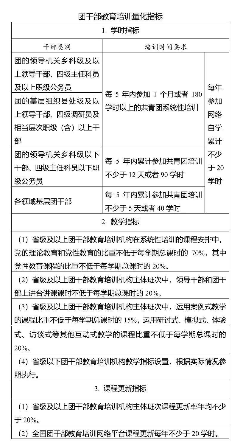 注:1. 本《规划》所指的团干部教育培训,是由各级共青团组织开展的教育培训。