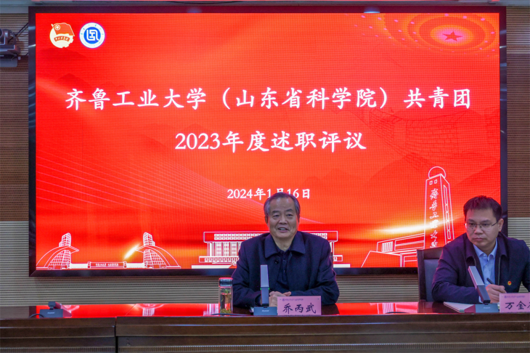 为深入贯彻落实党的二十大精神和团十九大部署,强化共青团思想政治引领功能发挥,实组织阵地建设,系统总结过去一年的工作内容和成绩实效,1月16日下午,齐鲁工业大学(山东省科学院)2023年度二级团委(团总支)书记述职评议会在行政楼352举行,校(院)党委委员、副校(院)长乔丙武出席会议并讲话,党委宣传部、党委统战部、学生工作部(处)、教务处、研究生工作部、团委等有关同志及各二级团委(团总支)书记到场参加,会议由团委书记万金存主持。
